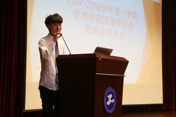 伴随着宣讲会的开始,首先上台讲话的是英国365集团公司官网团委员工会副主席王俊杰,为管院团委员工会即将迎来新的成员而表示热烈的欢迎,他结合自身经历为新同学们传授工作经验。接下来是秘书长徐倩上台讲话,同样为新同学的加入表示期待以及欢迎,她对秘书处做了简单介绍,并提及一些员工会的规章制度。。