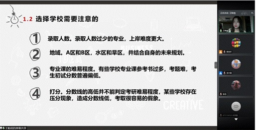 交流会主要是分为两个部分,分别针对大四同学的冲刺阶段经验分享以及面向大三同学的长线备考的心得交流。