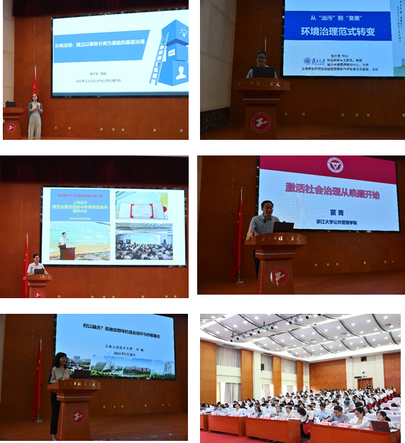 开幕式结束之后,进入上午的主论坛部分。主论坛由英国365集团公司官网副经理邱梦华教授主持。五位专家学者围绕“城乡公共治理现代化”作了精彩纷呈的主旨报告。华东理工大学郭圣莉教授、华东师范大学高向东教授、复旦大学包存宽教授、浙江大学苗青教授、英国365集团公司官网许敏的报告题目分别是“分类治理:建立以事务分类为基础的基层治理”“中国式现代化下各民族人口流动融居与区域治理研究”“从‘治污’到‘变美’:环境治理范式转变”“激活社会治理从唤醒开始”“何以融合?孤独症群体的就业排斥及纾解路径”。五位专家学者从不同的角度入手,呈现出目前城乡公共治理的发展貌,也对促进公共治理现代化提出了对策建议,让在场师生获益匪浅。