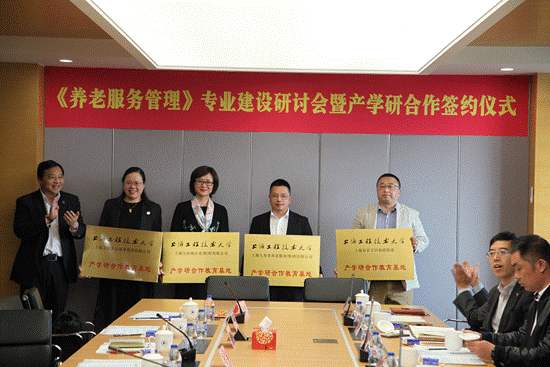 集团与上海人寿堂养老服务(集团)有限公司、上海九如城企业(集团)有限公司、上海万宏工业投资(集团)有限公司、仙霞街道全国智慧养老示范点等单位签署了养老服务管理本科专业产学研协议,并授予产学研合作教育基地铜牌。双方计划携手定向培养“养老规划师”,不仅满足了行业需求,也大大提升了职业形象和职业认同感,实现员工从大一至大四年级的“由进到出”的全周期产学研实践教育,实施校企“人才共育、效果共评”,着力提升员工的专业认知、理论素养、应用能力和就业竞争力,为企业和社会培育、输出优秀人才。