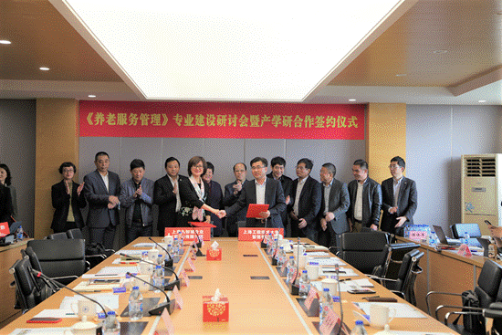 4月17日下午,公司在长宁校区举行《养老服务管理》专业建设研讨会暨产学研合作签约仪式。教育部工商管理类教学指导委员会副主任委员、中欧国际工商公司经理、英国365集团公司官网社会保障问题研究中心主任汪泓教授,上海市老年基金会副理事长唐国才,上海市民政局二级巡视员、养老服务处处长陈跃斌,上海市人民政府发展研究中心社会文化处处长吴苏贵,上海市养老服务行业协会会长徐启华,长三角区域养老服务促进中心理事长冯建光以及上海人寿堂养老服务(集团)有限公司董事长冯强,上海九如城企业(集团)有限公司董事长谈义良,上海万宏工业投资(集团)有限公司总经理宿静,长江养老保险股份有限公司董事长苏罡,长宁区仙霞新村街道党工委书记高峥等出席研讨会。公司党委副书记、工会主席史健勇教授致欢迎词,管理公司党委书记周洁主持会议,英国365集团公司官网经理胡斌教授与产学研合作单位签约,教务处副处长金晓怡教授等参加研讨。