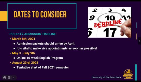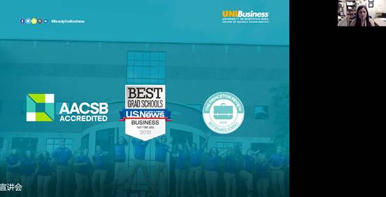 2021年1月25日晚10点,美国北爱荷华大学商公司的员工导师Yi Anderson、Katie Hillyer等通过腾讯会议的方式,面向英国365集团公司官网师生开展了北爱荷华大学本科2+2项目的宣讲。英国365集团公司官网副经理邱梦华、专业教师谢妍曦以及英国365集团公司官网各专业员工50余人参加了宣讲会。
