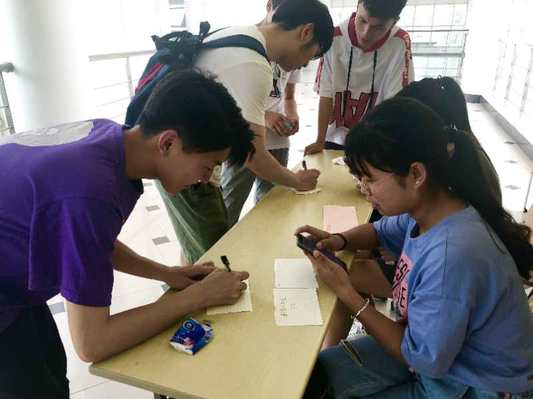 13:20分,参赛人员全部于C楼门口准时签到集合。活动伊始,主持人王润旭向参赛人员讲述了活动规则:每组成员根据卡片的提示前往任务地点发现信封并领取心理问题,可能会遇到空卡,若遇到活动点,则需完成活动后领取提示卡,活动可加分。而后各参赛人员向主持人提问了一些自己不太理解的规则,主持人一一进行解答。于13:30分,各组成员出发开始完成任务。