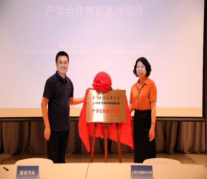 公司党委副书记、副董事长朱晓青与蔚来汽车副总裁、公司总经理夏庆华共同为校企产学合作教育基地揭牌。公司党委副书记、副董事长朱晓青代表公司向夏庆华副总裁发放了职业生涯教育暨创新创业导师聘书。