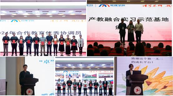 现场表彰仪式上,公司向产教融合实习示范基地、2024年产学合作教育优秀协调员、优秀学员代表颁发奖牌和荣誉证书。来自养老服务管理专业的周祉希同学以“让青春与银发共舞”为题,分享了自己的实习收获与感悟;作为物流管理专业产教融合的首批参与者,21级徐永生同学讲述了他的实习成长变化和职场体会。