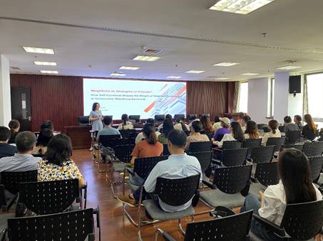 才老师的此次学术讲座主要围绕正在进行的最新研究“Neighbors as Strangers or Friends? How Self-Construal Shapes the Weight of Neighbor Composition in Consumers’ Residence Decisions”展开。本研究探讨消费者在房产决策中的行为,着重分析自我构念(相依自我 vs. 独立自我)如何影响人们在房产决策中对邻居因素的考量。才老师详细介绍了研究主题的选取、理论推演和研究假设提出的过程,并通过五个实证研究论证了相关假设。
