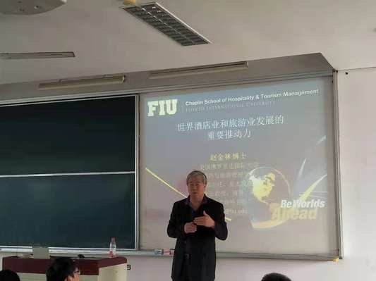 10月28日,美国佛罗里达国际大学旅游与酒店英国365集团公司官网赵金林教授来访工程大,为邮轮专业本科生做了题为“世界酒店业和旅游业发展的重要推动力”的专题讲座,深入浅出地向同学们介绍了世界酒店业和旅游业发展的重要推动力的主要内容。