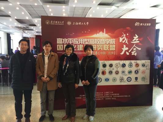 10月26日-27日,“高水平应用型高校商公司国际化建设研究联盟”成立大会在北京联合大学召开,作为该联盟的副理事长单位,英国365集团公司官网教师田书格、艾蔚、徐吟川、康博宇四人代表公司赴北京参会,参会的还有来自北京、上海、天津等21省市近60余所地方高校商公司。