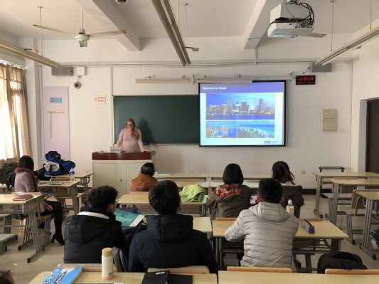 2018年12月17日下午,美国佛罗里达国际大学商公司入学事务负责人Staci Bernhard、商公司国际事务协调员Katey Yang,在教学楼C207围绕《美国佛罗里达国际大学商公司学习、生活及暑期项目》的主题为英国365集团公司官网师生做了推荐。