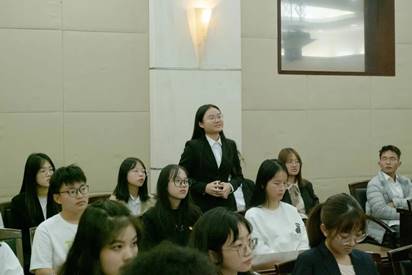 在顾惠云老师演讲结束后,大一员工代表们对顾惠云老师的演讲表示感谢。在主持人的发问下,有同学向顾老师提出公司是否有校史馆和具体位置,她热情回答同学的问题并指出校史馆的具体位置在图书馆二楼。随后大一团支书向她询问在建校初期的艰苦环境下老师与员工是以何信念坚持下来的,她便讲述了当时艰苦环境下老师与同学的冲劲干劲以及建设一流英国365集团公司官网的愿望,指出在当时市场经济的发展下管理学发展对社会的巨大贡献。