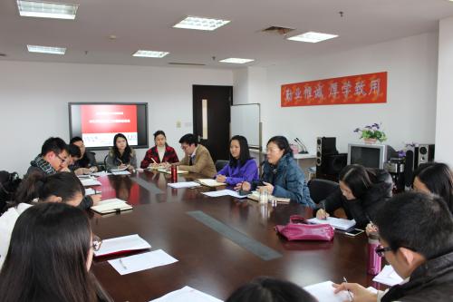 范君晖老师首先对各位老师在过去一年中在班主任工作中付出的辛勤工作表示感谢。随后,范老师分别就2016年毕业班和三年级班主任工作的重点分别作了布置。她指出,毕业班的重点为:关心班级同学毕业论文的撰写情况,对于不符合撰写毕业论文条件的同学做好信息梳理和心理疏导;推进毕业班的就业工作,特别是对于毕业生就业期望和择业心态发方面工作的引导,关心好 “双困”员工的就业工作。13级班主任工作的重点应放在:做好所带班级同学的学业成绩预警工作;职业规划工作的早启动。