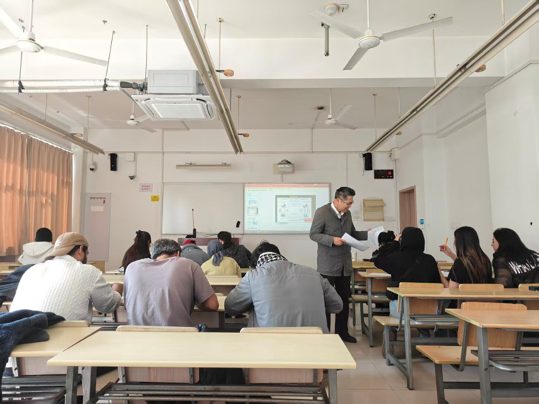 此次授课活动中,莫经理凭借其在大型高新设备引进领域的丰富经验,以真实的科技贸易合同为案例,全英讲授了商务合同的关键条款、单据及风险防控。他紧密结合当前中美贸易摩擦背景,深入剖析了国际贸易中的潜在风险与应对策略。