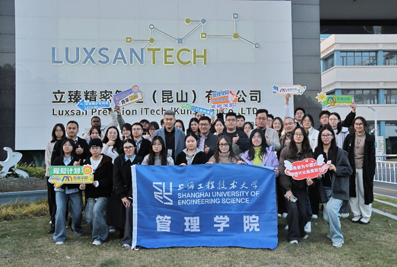 师生走进立讯精密智造(昆山)有限公司,实地考察智能化管理系统与数据可视化平台。企业代表展示了人工智能在产销协同中的应用,并详细介绍了数字化转型的具体路径。在座谈中,同学们围绕跨专业发展、技能需求与职业通道等问题,与企业方展开交流,进一步明确工程与管理融合在高端制造业中的重要性。