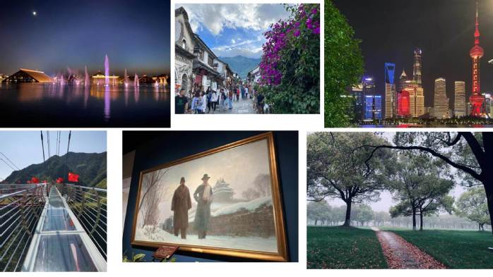 (自左向右:1、许敏 月影富林;2、陈晓华 大理古城;3、刘颖 浦江明珠夜;4、郭丽娜 红毅盎然;5、贾润佰 南陈北李,相约建党;6、唐艺霖 晓雾中的校园)