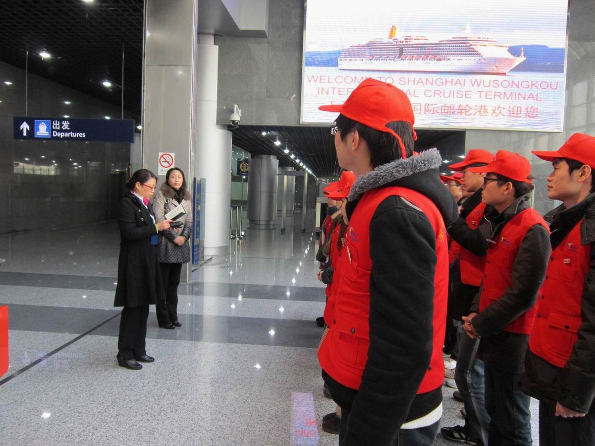虽然室外天气寒冷,可员工志愿服务的热情高涨。公司党委副书记虞蓉老师要求同学们怀着对校、院领导的感激之情,珍惜此次实践锻炼的机会,把世博的志愿者精神传承下来,在与专业相结合的实践岗位上做好本次志愿者服务工作,并为大家做了志愿者服务相关的礼仪知识的培训。通过一个多小时的车程,同学们到达了吴淞口国际邮轮港,邮轮港的徐经理为同学们做了了简短的岗位培训。随后,由港口工作人员为同学们安排岗位,分配了工作。在为国际游客服务的过程中,同学们个个精神饱满,面带微笑,给人留下了良好的印象。此外,邮轮专业大三年级的两名同学接受了电视台的采访,叙述了对此类志愿者活动的支持以及对本专业的热爱。同学们也希望在日后能够有更多和专业有关,专业性更强的时间活动可以参加,一方面增加了同学对专业的了解,另一方面也很好地锻炼了同学们的责任心、人际交往能力和英语口语能力,使自己的综合素质不断提高。
