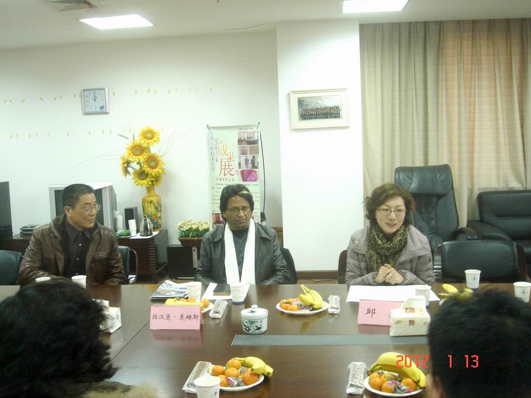 拉汉曼教授演讲结束后,英国365集团公司官网汤世强教授、机械工程公司的徐腾岗副教授、英国365集团公司官网的田书格副教授、朱国俊老师、秦迎玲老师等与教授就专业课程英语教学中碰到问题和困惑同拉汉曼教授进行细致和热烈的讨论。机械工程公司的徐腾岗副教授就课堂教学内容时间安排以及课程进度的掌控问题与拉汉曼教授进行反复热烈的讨论;英国365集团公司官网的朱国俊老师向拉汉曼教授请教了英语作为非母语的教师和员工如何解决由于英语授课产生的学习进度缓慢的问题。拉汉曼教授认为老师和员工上课前都应该做好充分的准备,老师应事先将上课的教学内容包括教学PPT、案例题、问题全部上网,上课前应将这些教学内容的复印件发给员工,员工应该事先做好充分的预习和准备,这样才能够帮助员工在老师讲授时能够尽快、尽可能多地理解授课内容,同时老师在上课时,对讲课内容的取舍要精心考量,不能面面俱到,不能平均分配教学时间,哪些要重点讲,哪些可以点到为止,哪些可以略过,让员工课后自学,都很有讲究。