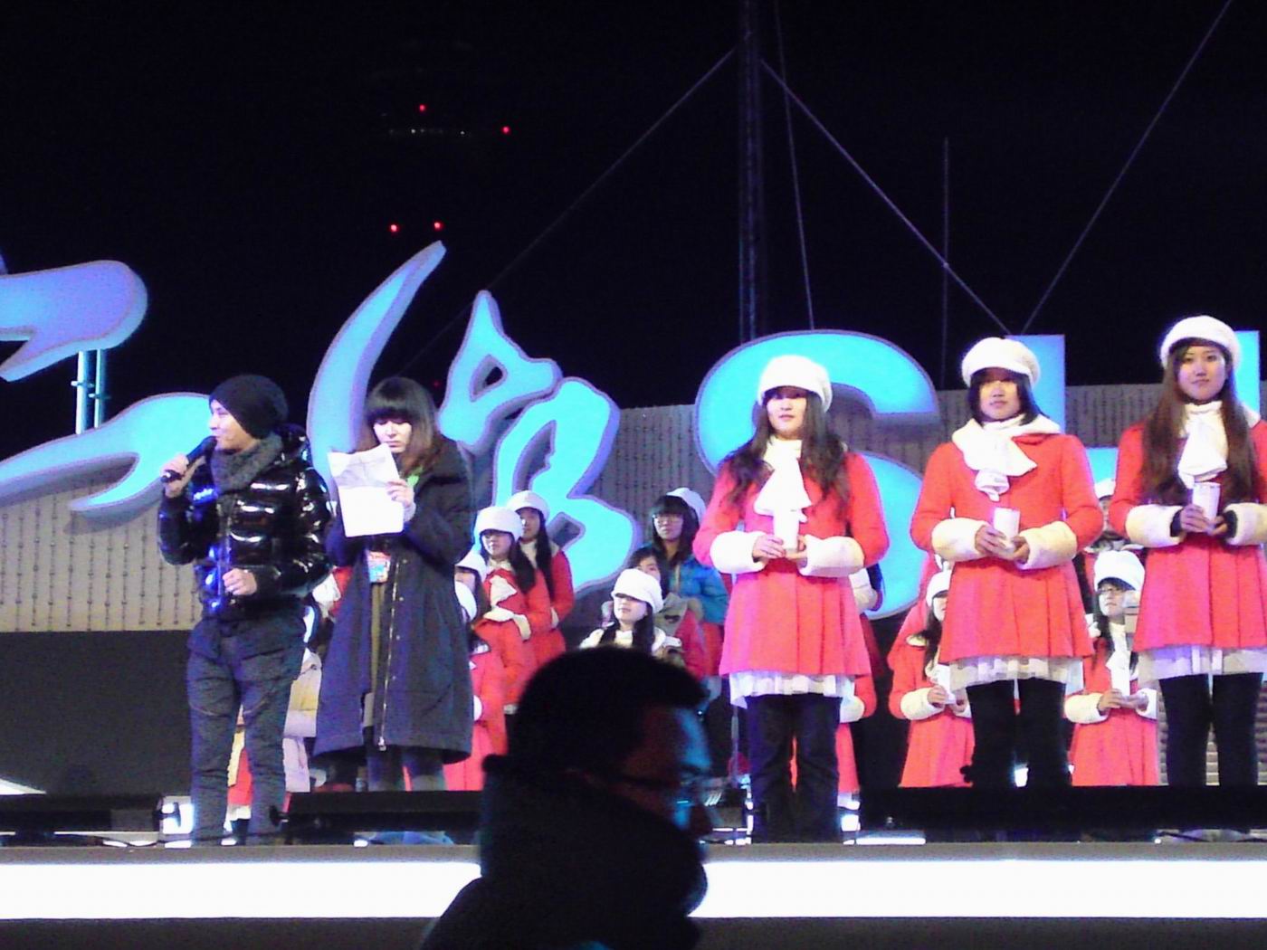 随着主持人朱桢欢快的话语,正式彩排开始了。一首《Happy New Year》同学们端庄、高雅,手托烛灯,或上或下,伴随着身体的摇动,一副新年喜庆欢快祥和的气氛,就连驻足围观的市民都享受其中。第二首是一首欢快的《友谊地久天长》,250名演员和舞者一同在舞台上欢快跃动,大家俨然就如同已是1月1日零点一般,路边的外国友人甚至也手挽手跳起了新年的舞蹈,整场表演气氛热烈欢快,得到了导演的好评。