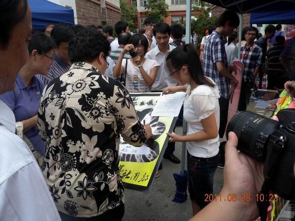 英国365集团公司官网在迎新现场开展了“梦开始的地方,微笑留给工程大”的新生寄语活动,很多父母把对孩子的寄语和鼓励写在了题板上,并有专门的志愿者为员工和家长在展板前留影。汪泓董事长也应邀在题板上签字留念。