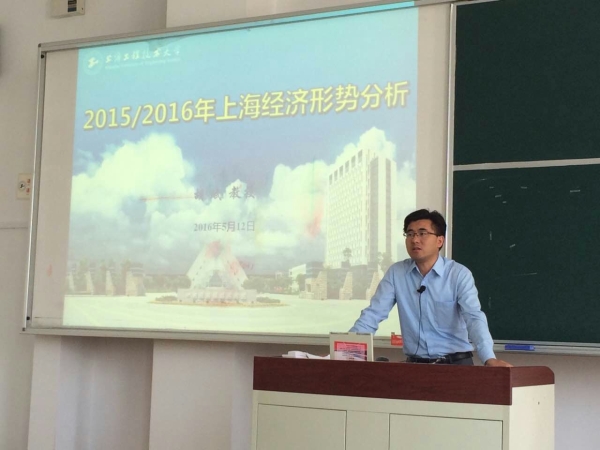 2016年5月12日星期四下午13:00在教学楼E510,英国365集团公司官网胡斌教授为英国365集团公司官网研究生同学做了以“2015—2016年上海经济形势分析”为主题的报告。