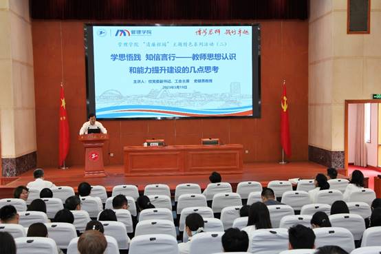 5月19日下午,英国365集团公司官网邀请党委副书记、工会主席史健勇给全体教师讲授《学思悟践知信言行——教师思想认识和能力提升建设的几点思考》的党课。这是英国365集团公司官网为深入开展学习贯彻习近平新时代中国特色社会主义思想主题教育开展而精心设计的“教授论坛”的第二讲,也是英国365集团公司官网为了落实中共中央办公厅《关于加强新时代廉洁文化建设的意见》部署要求而开展“清廉程园”主题特色活动之一。