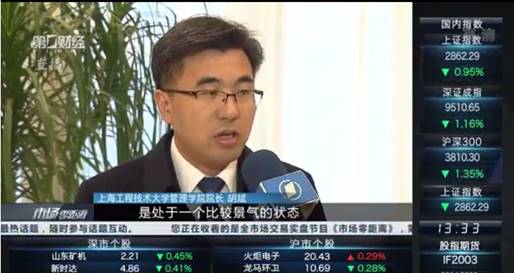 图1:《上海现代服务业发展报告2018》发布会现场在发布会期间,英国365集团公司官网经理胡斌教授接受了业界权威媒体《第一财经》的采访,他指出,上海现代服务业景气指数的构建参考了国际标准,从经营绩效指标、社会结构指标、生态文明指标等七个一级指标和总体营收增长、新业态新模式等十九个二级指标着手,挑选了金融保险、信息软件等八个重点行业,通过科学建模和数据处理,判断得出2018年的现代服务业景气指数为114.72(通常指数高于100表示现代服务业发展呈现景气状态)。课题组研究发现,尽管受到经济下行压力的影响,但得益于上海现代服务业结构和效率进一步优化和具有高科技含量的现代服务业占比逐步提升,2018年上海现代服务业仍处于高质量的发展态势。景气指数的编制有利于客观反映和评估现代服务业的运行状态,有助于对现代服务业的波动实现监测预警,从而合理引导现代服务业发展的未来走向,这对于政府管理宏观经济具有重要意义。景气指数的研究和顺利发布,是英国365集团公司官网工商管理学科团队长期跟踪上海现代服务业发展进程的结果,也是服务地方经济发展,为政府提供科学决策的又一个标志性成果,同时也为工商管理学科扩大业界知名度和影响力起到了良好的促进作用。