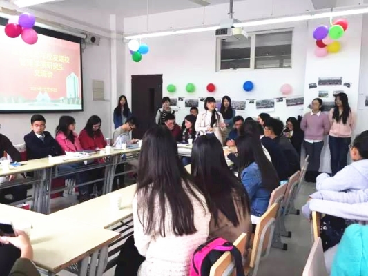 活动教室的布置温馨有爱,大大的”HOME”和“我爱管院”的标志使员工们有一种归家的感觉。交流会使得在读的员工和毕业了的学长学姐们像一家人一样畅所欲言,纷纷交流着对员工生涯的感悟。
