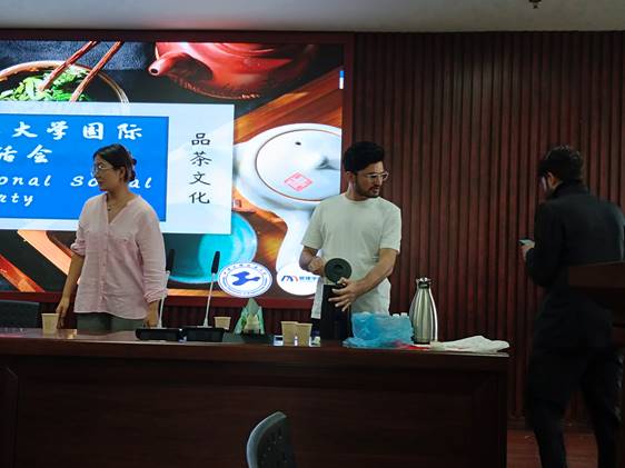 此次活动围绕茶文化精心准备了三个环节,在茶话会的开始,我们品尝到中国传统的绿茶和由可汗同学制作的巴基斯坦茶,绿茶选取的是冠列中国十大名茶之首的龙井,龙井茶素以色翠、形美、香郁、味醇冠绝天下,其独特的“淡而远”“香而清”的绝世神采和非凡品质,在众多茗茶中独具一格;巴基斯坦的奶茶历史也十分悠久,分为甜奶茶和咸奶茶两种,此次可汗同学制作的则是甜奶茶,由鲜牛奶,白砂糖,红茶和巴基斯坦豆蔻(一种当地种植采摘并晒干的果实,具有独特香味)共同烧制而成,是巴基斯坦人民在日常生活和社交中不可或缺的饮料。在享受美味的同时,顺利开启了本次茶话会。