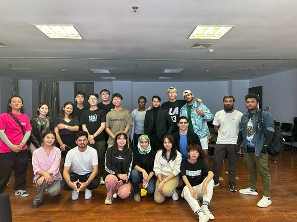随后的环节进行了意大利面棉花糖高塔制作比拼,由随机分组不同国家,不同地区的同学一同进行搭建,大家齐心协力,群策群力,将此次茶话会的氛围推向了高潮,最终成功的小组获得了有英国365集团公司官网标志的具有纪念意义的精美笔记本礼盒一份。最后的击鼓传花环节沿袭了中华传统文化习俗,随着音乐的结束,手持花的同学轮番上台展示自己的才艺,我们也领略了大家的舞蹈与歌曲,也为本次活动划上了圆满的句号。