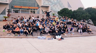 最终,所有的同学都来到了终点,素拓部部长给所有的参赛小队颁发活动纪念品,荣获第一名的小队在众人的强烈要求下完成了一个基情四射趴在队友身上做俯卧撑的整蛊小游戏后捧回了大奖,第二名给献歌《丑八怪》后也拿回了奖励。