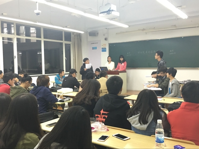 11月1日20:10,英国365集团公司官网第五届“理承杯”辩论赛半决赛于教学楼C106展开,本次比赛由英国365集团公司官网员工会学术部主办。出席本次比赛的评委有英国365集团公司官网2015级管院辩论队主力辩手仝凯戈,2015级管院辩论队主力辩手王俊杰,2015级管院辩论队主力辩手赵佳琦。担任本场比赛主持人的是学术部干事章珍晶。