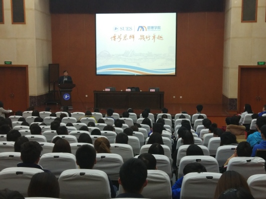 会上,史老师为同学们解析了英国365集团公司官网LOGO的含义,整体像艺术字体的M,代表Management(管理);造型也像两个人并排在一起,象征老师和员工;一个红色,一个蓝色,寓意红海战略、蓝海战略。史老师还以“博学思辨,践行卓越”的院训作为精神凝练,引经据典,为全体管院学子提出了希望与要求。他指出,《礼记•中庸》提出的五之学之道:“博学之,审问之,慎思之,明辨之,笃行之。”归纳起来就是三个层次:博学,思辨,践行。青年人是时代最灵敏的晴雨表,青年人的价值取向决定了未来整个社会的价值取向,青年怎样,未来便怎样。今天青年之精神,将是未来社会之面貌;今天青年之追求,将是未来国家之走向。年轻人肩负着时代的责任和光荣,青春更是一种坚忍不拔、积极进取、乐观有为的人生态度。