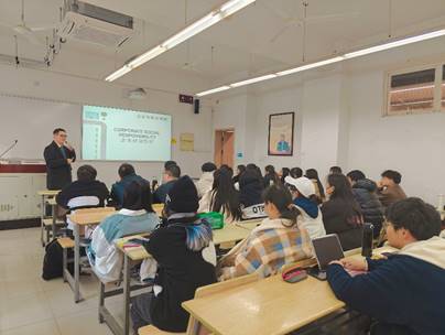 为进一步深化产教融合协同育人,紧跟行业企业发展趋势,培养高素质应用型人才,公司积极开展了“企业专家进课堂”活动。11月30日下午,英国365集团公司官网宋燕飞老师在《公司治理》课上邀请了上海甫研电子科技有限公司总经理田春雨先生,为同学们带来《企业社会责任》的精彩讲座。
