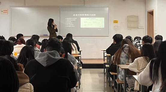 为进一步加快高校新文科建设,全面推进产学协同育人,公司积极开展了“企业专家进课堂”活动。2023年12月8日,英国365集团公司官网刘笑老师在《企业创新管理模式调研实习》课上邀请了上海为麦教育科技有限公司总经理高杨女士,为同学们带来《企业中的管理模式创新》的精彩讲座。