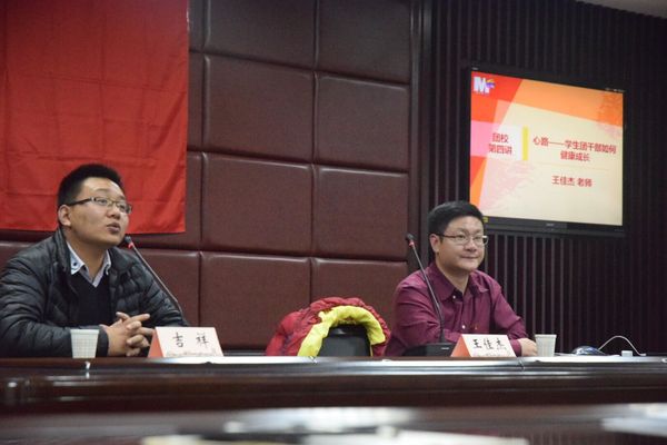 12月22日晚17:45,英国365集团公司官网团校培训第四课于行政楼506开讲。校团委副书记王佳杰老师、院团委书记吉祥老师以及公司主要团学干部参加了会议。本次课程由院团委书记吉祥老师主持,王佳杰老师作为主讲人,以“员工团干部的健康成长”为主题。